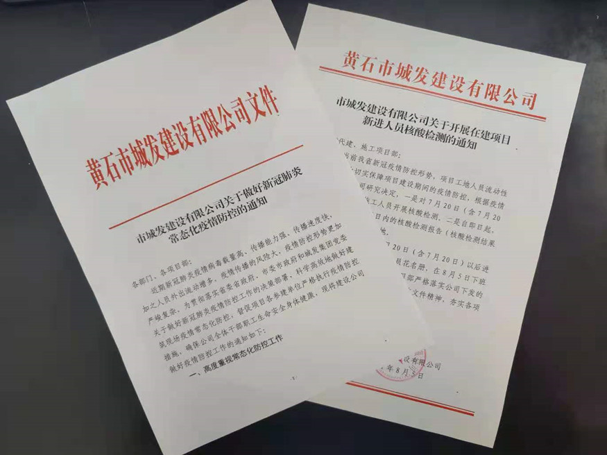 鑒于項(xiàng)目工地人員密集,流動(dòng)性大的特點(diǎn),8月5日,公司印發(fā)了《市城發(fā)建設(shè)有限公司關(guān)于開展在建項(xiàng)目新進(jìn)人員核酸檢測的通知》,為切實(shí)擔(dān)負(fù)起防疫抗疫責(zé)任,有效降低人員流動(dòng)引發(fā)的疫情傳播風(fēng)險(xiǎn),要求7月20日以來新進(jìn)項(xiàng)目員工須持3日內(nèi)合格核酸報(bào)告進(jìn)入項(xiàng)目工地。